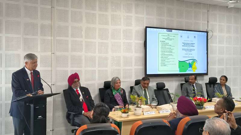 The keynote address by Lt. Gen. Arun Sahni focused on India’s strategic posture in the eastern sector, stressing the need for adaptive defence planning and closer coordination between diplomatic, military, and developmental instruments. Ms. Jyoti Malhotra, editor-in-chief, The Tribune, in her special address, provided valuable insights into regional political trends, media narratives, and diplomatic challenges. The session concluded with presidential remarks by Gen. VP Malik, who underlined the importance of sustained strategic engagement and institutional capacity-building both at civil and military level in the region.