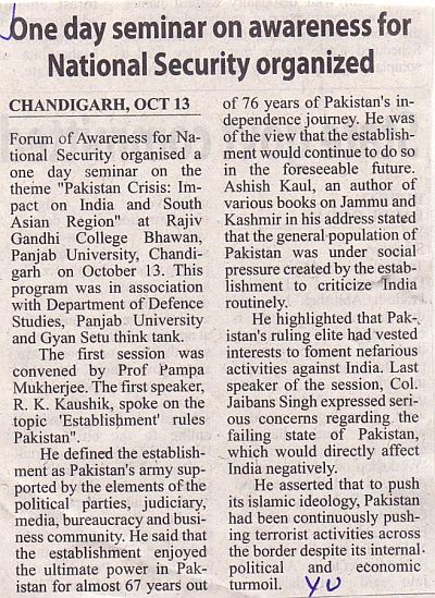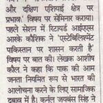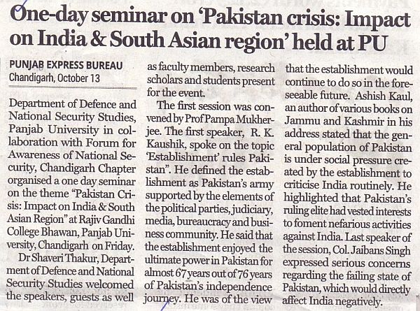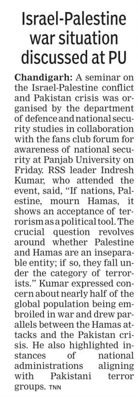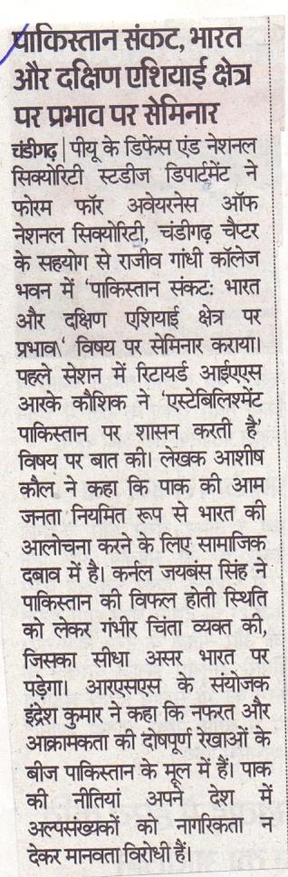 Media Coverage – “Pakistan Crisis: Impact on India and South Asian Region” by admin | Oct 26, 2023 | Media Coverage | 0 comments Punjab Express Yug Marg Times of India Dainik Bhaskar