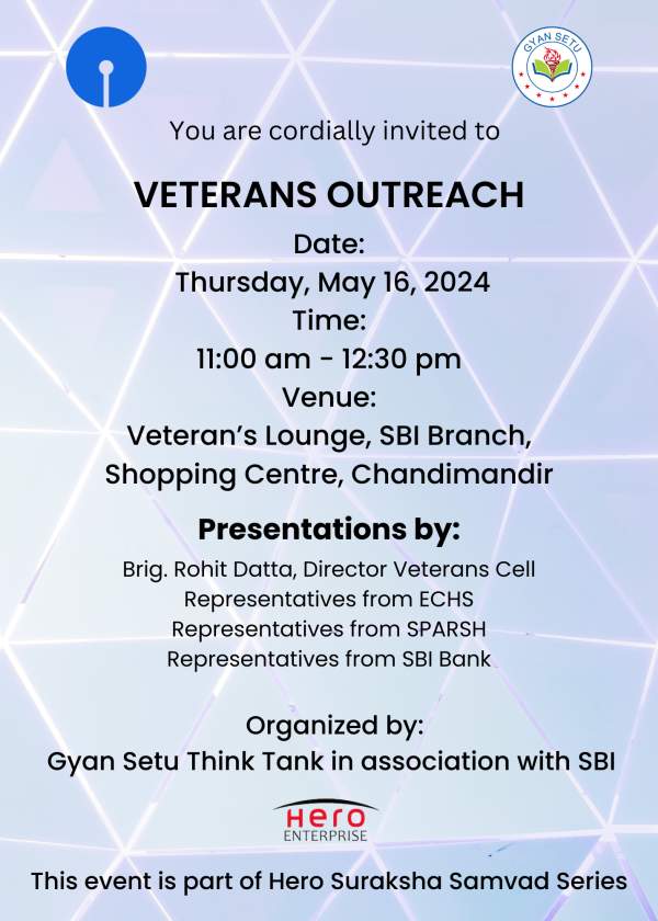 Gyan Setu Think Tank in association with State Bank of India organized a special event exclusively for Veterans and Senior Citizens on Thursday, May 16, 2024 at Veteran’s Lounge, SBI Branch, Shopping Centre, Chandimandir Cantt.